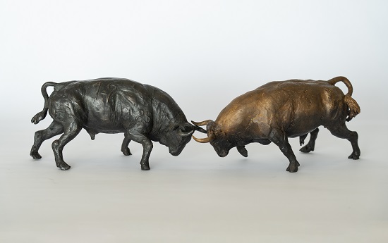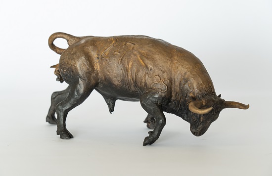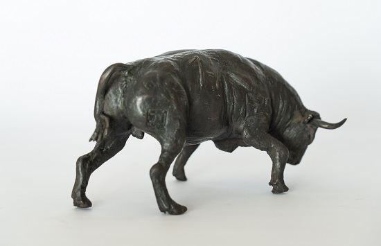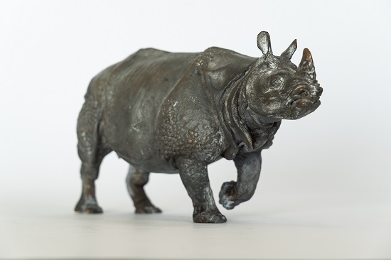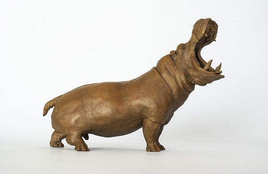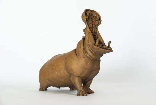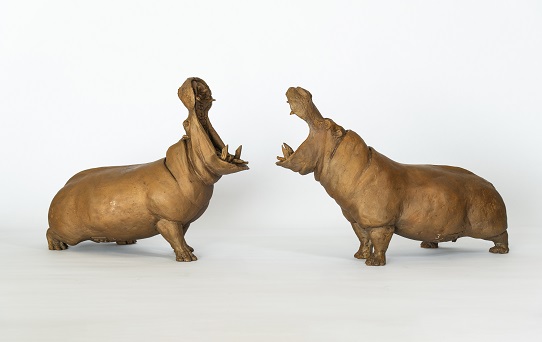 Los temas de Juan son modelos de gran masa, rinocerontes, elefantes, hipopótamos, toros, morsas… que contrarrestan esa aparente morbidez de la forma con la tensión buscada del movimiento intuido, consciente del desafío que representa obtener siempre esa impronta característica de sus trabajos, la pausa previa al inicio de la acción.